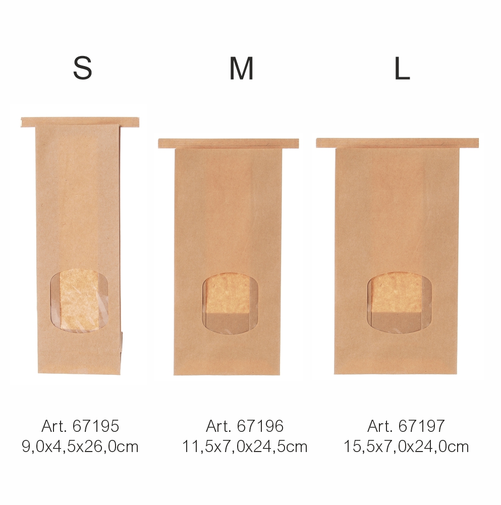 Blockbodentüte S mit Sichtfenster/Clip 9,0 x 4,5 x 26,0cm